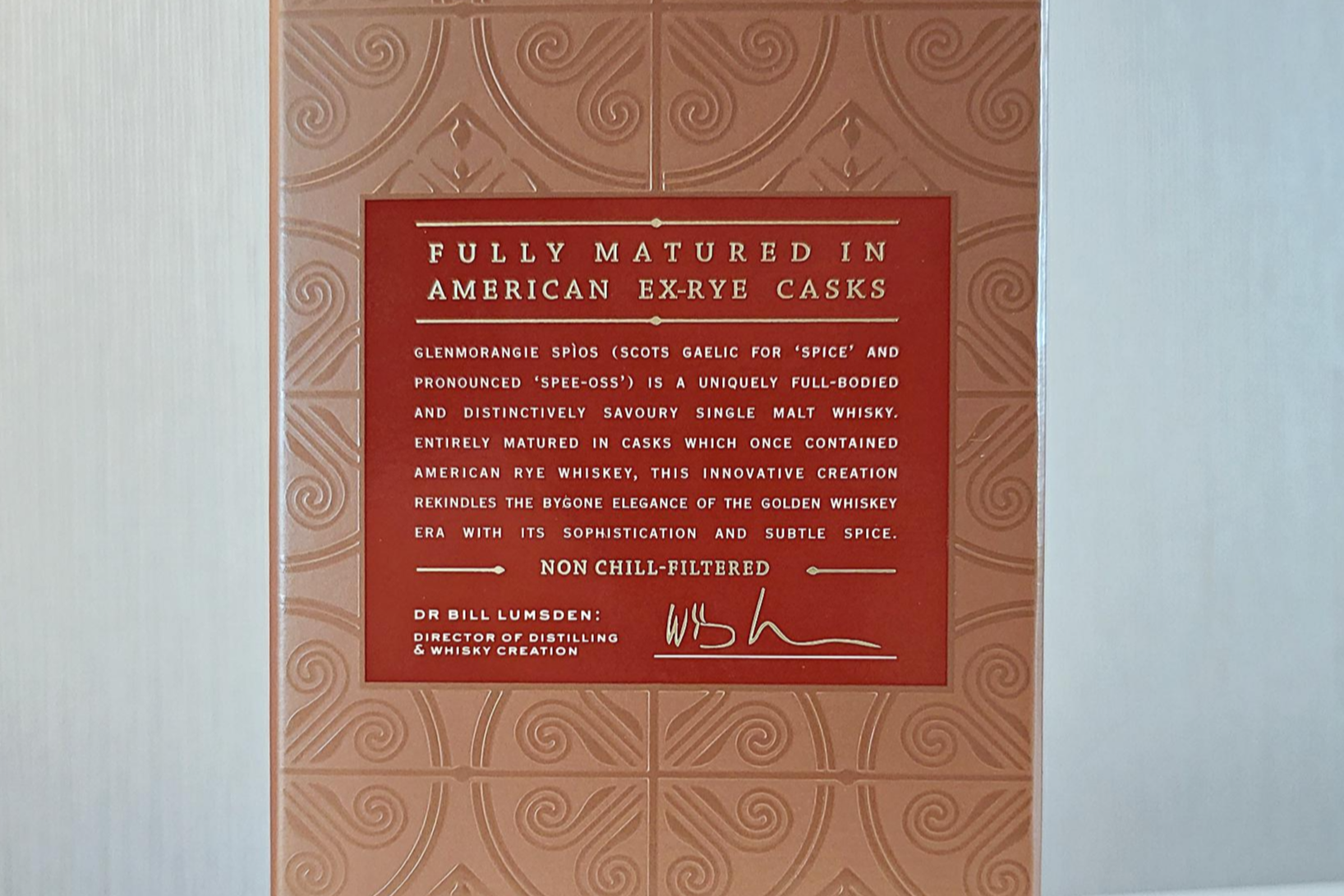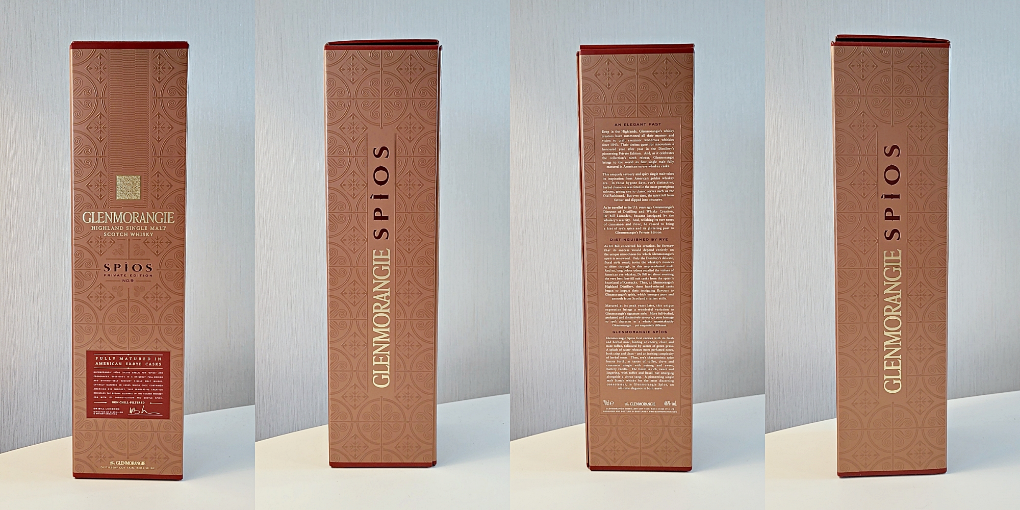 공식 홈페이지에서는 글렌모렌지 스피오스를 American ex-rye whiskey cask 에서 숙성된 최초의 글렌모렌지 제품이라고 소개하고 있습니다.