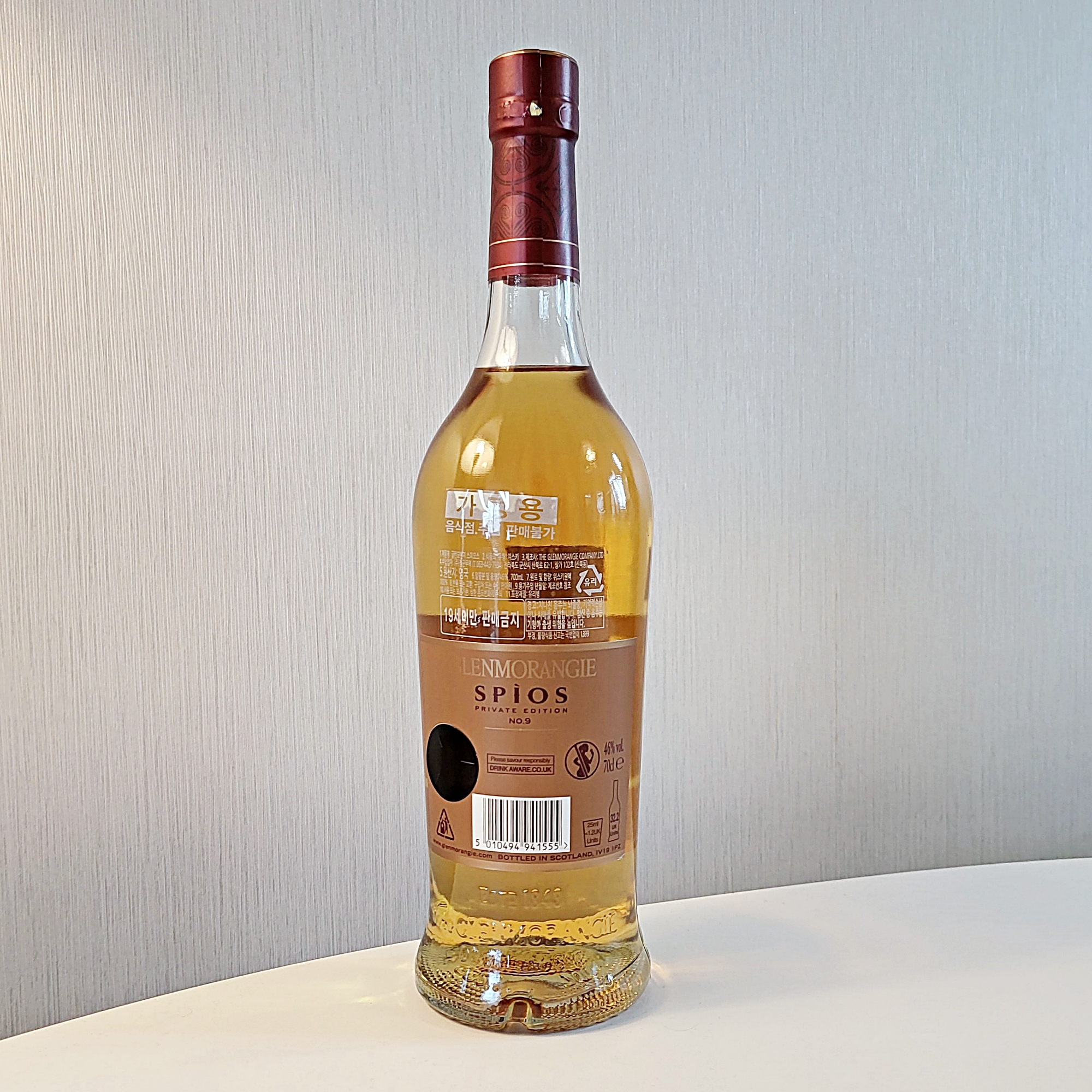 글렌모렌지 스피오스는 요즘 출시되는 위스키답지 않게 내츄럴 컬러로 병입된 제품입니다.
