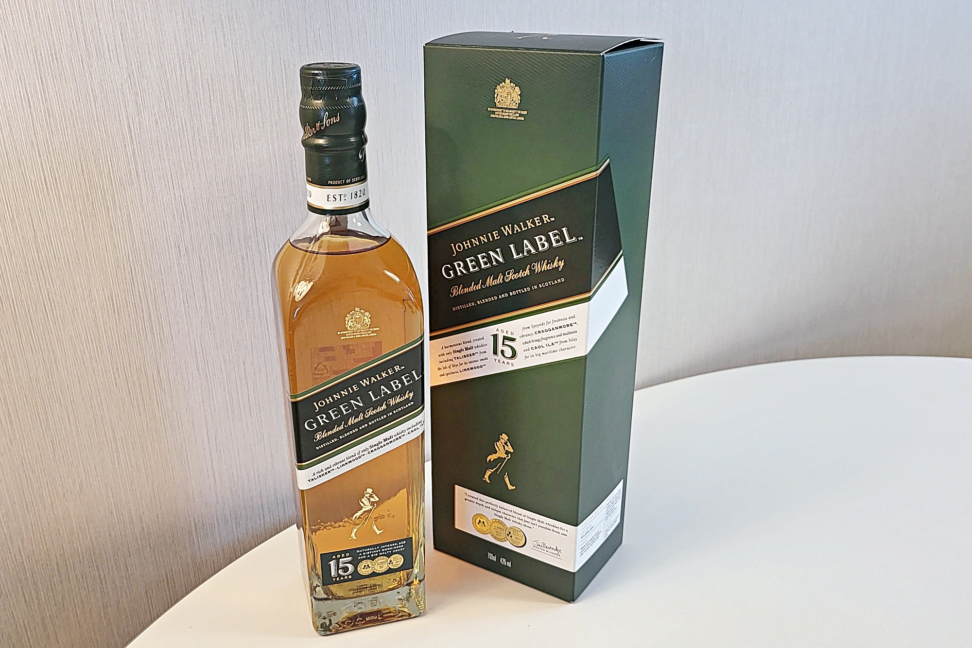 조니워커 그린 라벨 15년은 조니워커 위스키 시리즈 중, 몇 없는 블렌디드 몰트 위스키 중 하나입니다.