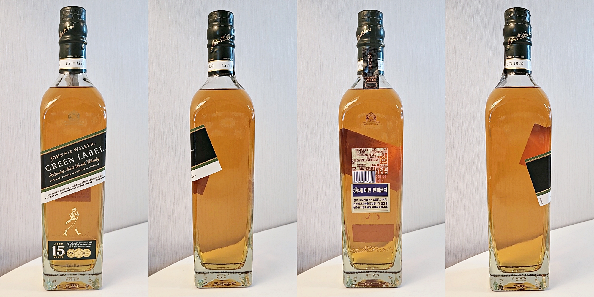 조니워커 그린 라벨 병의 모습입니다.