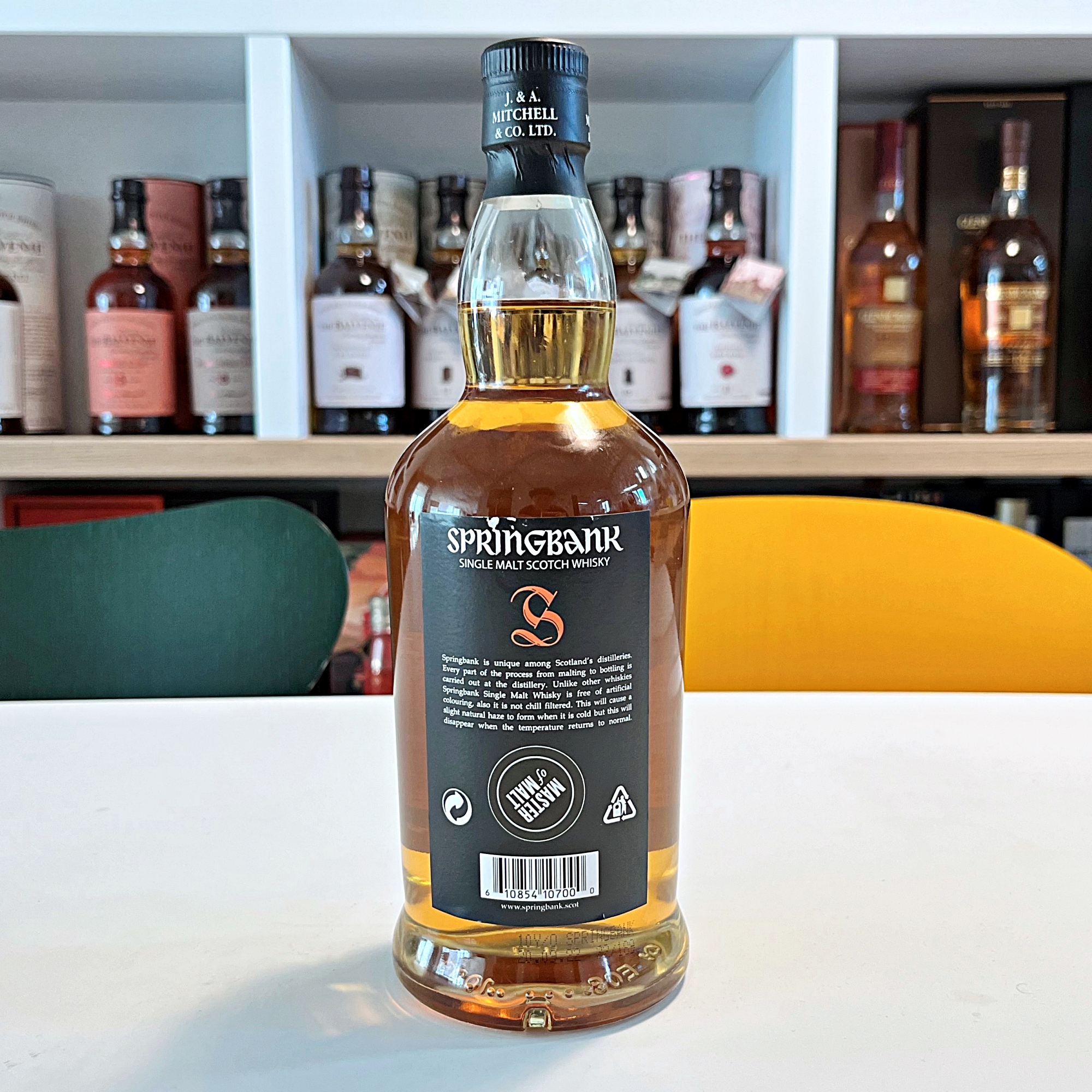 Springbank is unique among Scotland's distilleries. Every part of the process from malting to bottling is carried out at the distillery. Unlike other whiskies Springbank Single Malt Whisky is free of artificial colouring, also it is not chill filtered. This will cause a slight natural haze to form when it is cold but this will disappear when the temperature returns to normal.