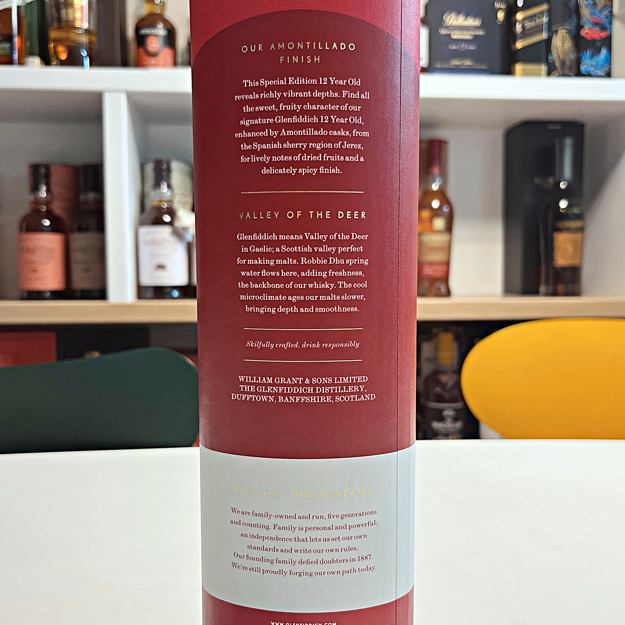 This Special Edition 12 Year Old reveals richly vibrant depths. Find all the sweet, fruity character of our signature Glenfiddich 12 Year Old, enhanced by Amontillado casks, from the Spanish sherry region of Jerez, for lively notes of dried fruits and a delicately spicy finish.