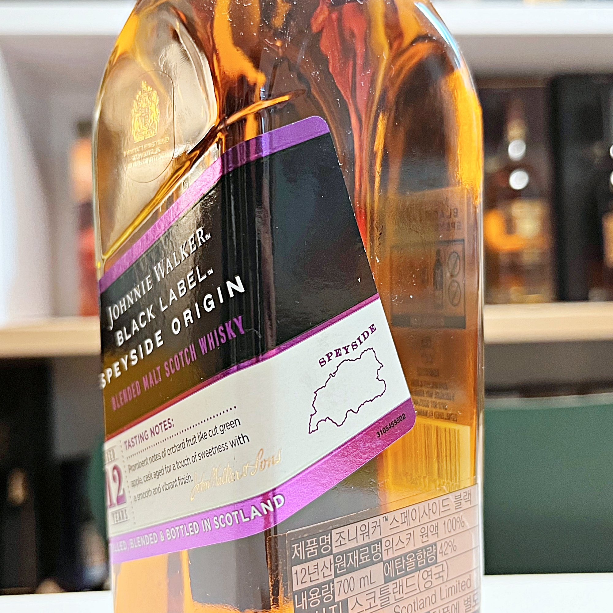 조니 워커 블랙 라벨 스페이사이드 오리진 제품은 스페이사이드를 대표하는 원액의 증류소를 사용하여 만들어진 위스키입니다.